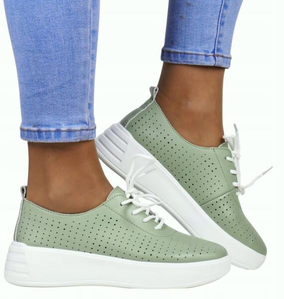 Félcipő Áttört Bőr Tornacipő Zöld Menta Könnyű (018 ZIELONE)ALLEGRO
